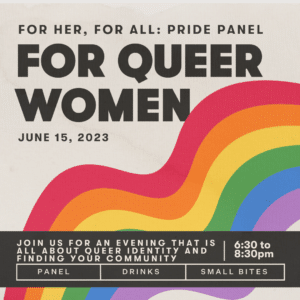 Join us for the For Her, For All: Pride Panel. This event centers the stories of diverse women as they share their unique experiences of queer identity and finding community. Enjoy drinks and small bites and cultivate meaningful connections. This event celebrates women and non-binary folks in the LGBTQIA+ community; allies welcome.